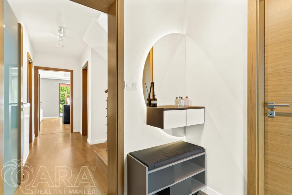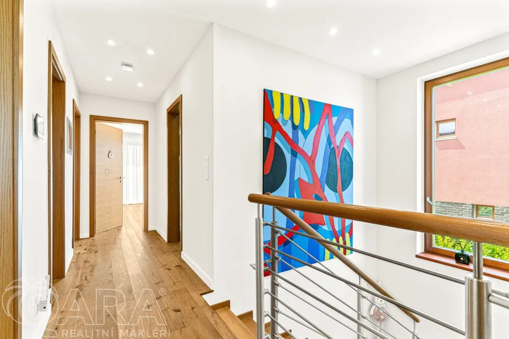 Patrový rodinný dům o dispozici 5+kk a podlahové ploše víc než sto padesát metrů čtverečních nabízí dostatek prostoru pro každého člena vaší rodiny.