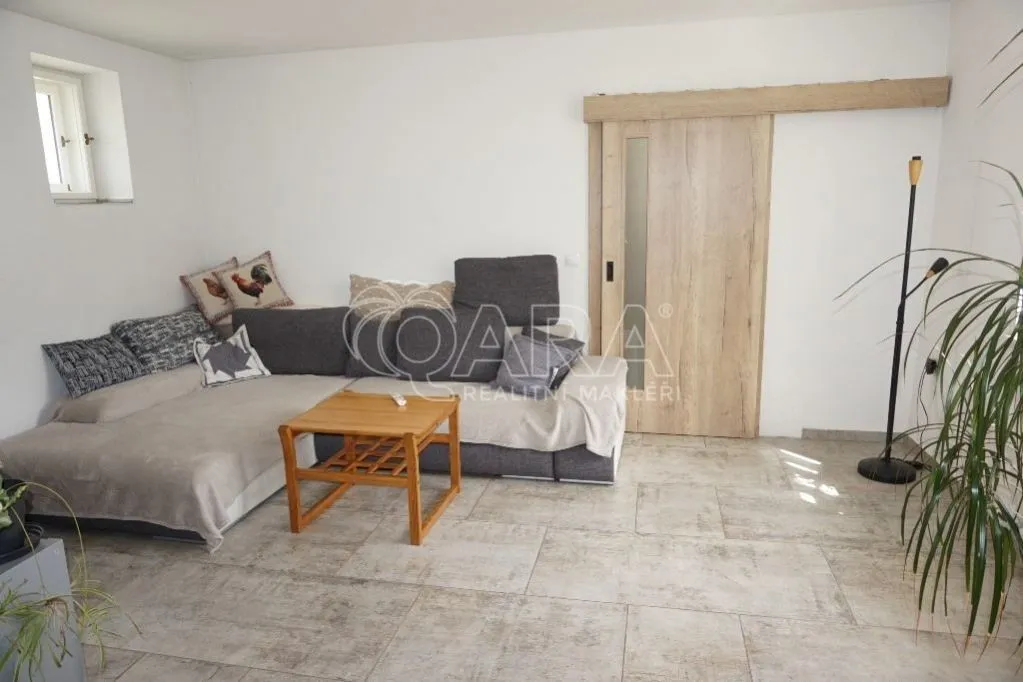 S přáním pěkného dne Vám nabízíme k prodeji hospodářské stavení s dvorem, rekonstruovanou obytnou částí 2+1, stodolami, chlévy a velikou zahradou na okraji obce Horní Kněžeklady nedaleko Týna nad Vltavou. Jedná se o klasické čtvercové stavení s vnitřním dvorem, z něhož jsou vstupy do chlévů, skladovacích prostor a stodoly. Další stodola tvoří ještě přístavek v zadní části domu. Obytná část domu, cca 120m2, prošla kompletní vkusnou rekonstrukcí. Nové podlahy včetně izolací a podlahového vytápění, veškeré rozvody, omítky, osazena krbová kamna, nová kuchyňská linka, obložkové dveře, WC, koupelna se sprchovým koutem i vanou atd. Hlavní vytápění zajišťuje moderní kotel na dřevo s akumulační nádobou 2m3 a odvodem spalin novým komínem Schiedel. Vodu je možno využít jak z obecního vodovodu, tak ze studny. Odpad řešen jímkou. Další hospodářské budovy skýtají budoucímu majiteli téměř neomezené možnosti dalšího zvětšování obytných částí ať pro vlastní potřebu nebo pro podnikání. Další prostory pak nabízejí rozlehlé půdy. Za domem se nachází menší zahrada na klidné posezení, vedle objektu podél asfaltové komunikace pak pokračuje zahrada tvořená dvěma, dle územního plánu zastavitelnými, parcelami 819 m2 a 1159 m2. Vše rovinaté. Celkově se jedná o objekt s možností okamžitého obývání nabízející nepřeberné množství dalších možností využití, případně i například možnost budoucího odprodeje stavebních parcel dalšímu majiteli. Možno financovat hypotečním úvěrem, který Vám velice rádi vyřídíme.