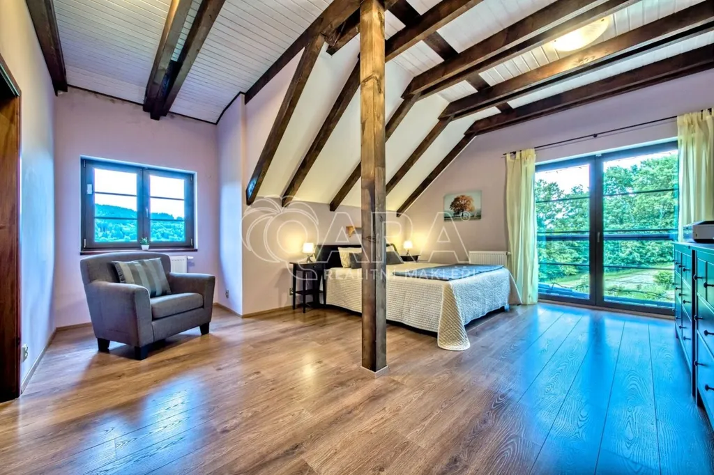 Nabízíme ke koupi exkluzivní horskou rezidenci ve vyhledávané lokalitě Vrchlabí, přímo mezi skiareály Bubákov a Herlíkovice. Dům o dispozici 7+kk je doplněn o samostatný apartmán 2+1 a nabízí celkovou užitnou plochu 568 m. Nachází se na prostorném pozemku o rozloze 4 087 m a je nabízen kompletně vybavený, připravený k okamžitému užívání. Co na této nemovitosti oceníte nejvíce je naprosté soukromí, klid a nádherné výhledy.