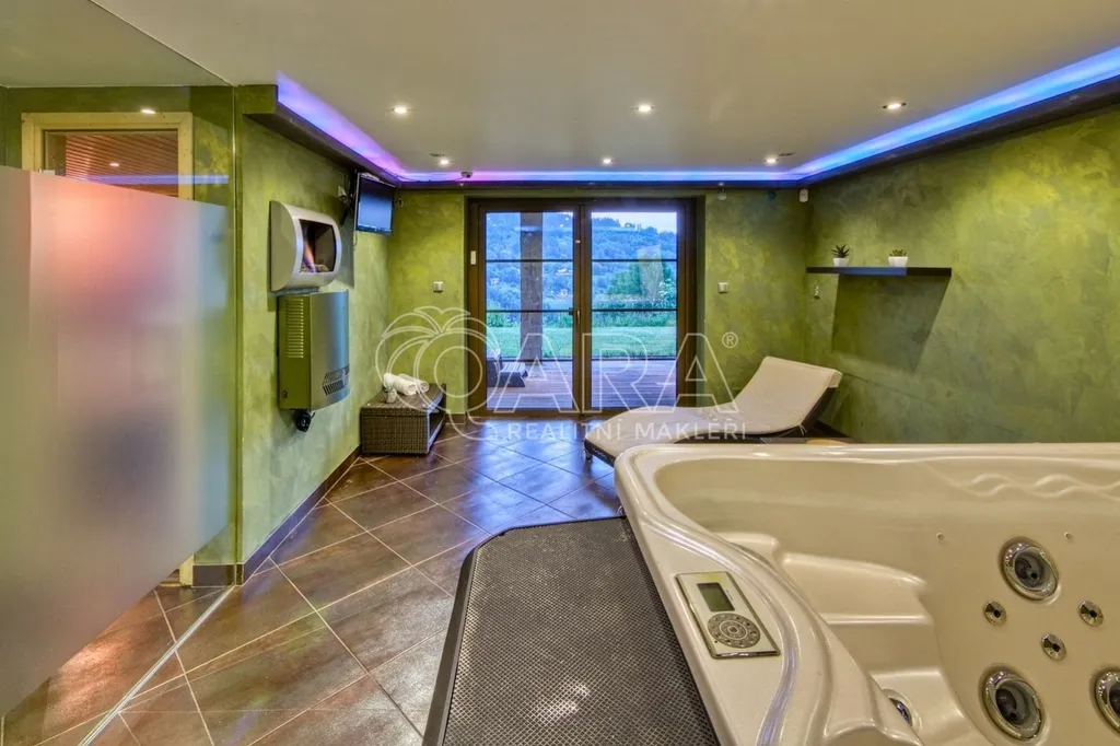 Interiér je řešen velkoryse s důrazem na komfort a prostor, k dispozici je vnitřní i venkovní wellness zóna se saunou a vířivkou, prostorná terasa s posezením, venkovní ohniště a praktické zázemí šatny a lyžárny.
