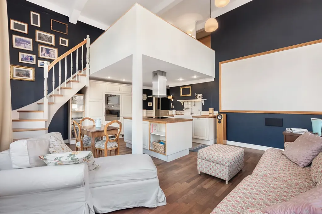 Loft ve třetím patře rezidence je rozdělen na spodní patro 42 m2 + galerii 18 m2. Je nádherně vybaven přesně tak, jak na fotografiích. Obývací pokoj je vybaven kuchyňskou linkou s vestavěnými spotřebiči, gaučem, designovými dekoracemi a nechybí ani promítací plátno. Horní patro je vybaveno manželskou postelí. Na patře vás ohromí i prostorná šatna, která nabízí mnoho úložného prostoru. Koupelna je vybavena vanou a toaletou.
