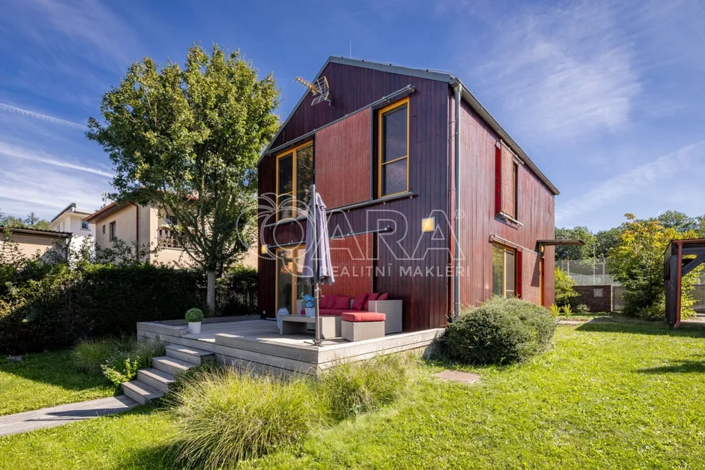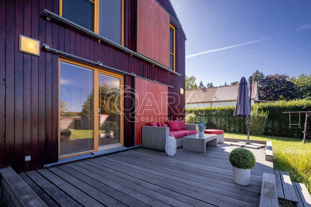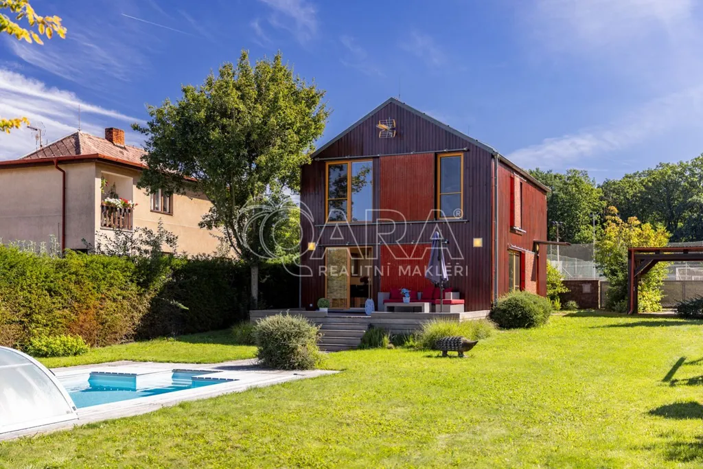 Elegantní, moderní a plně zařízená dřevostavba 4+kk, kolaudovaná v roce 2012, klidná ulice V Březinkách , s terasou (20m2), větším bazénem i udržovanou zahradou, se již brzy může stát vaším novým domovem.