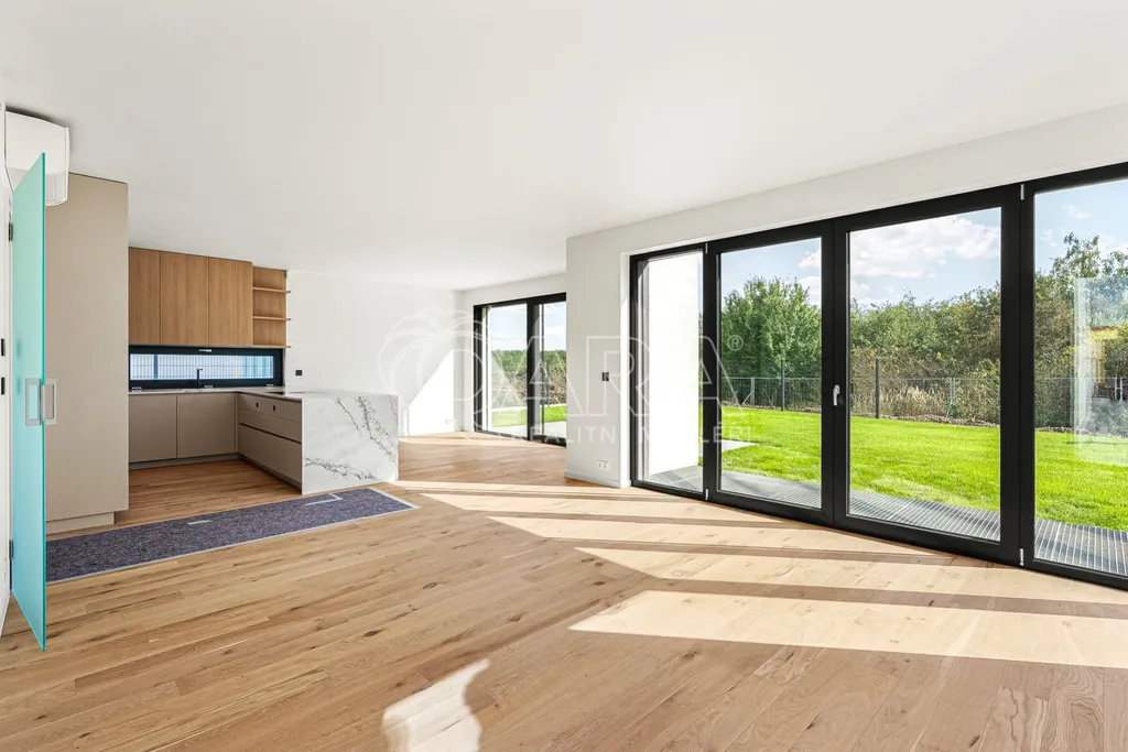Nabízím vám novostavbu před dokončením nízkoenergetického rodinneho domu se zahradou a garáží pro dvě auta, který byl navržen s akcentem na vysokou kvalitu použitých materiálů a vybavení. Užitná plocha domu 288m2 s dispozicí 5+kk jistě uspokojí nároky i velké rodiny. Čtyři ložnice, tři koupelny, prostorný obývací pokoj, velká garáž, dvě terasy, dvě technické místnosti, sklep pod celým domem. Vyniká skvělým propojením interiéru s exteriérem. Francouzským oknem vstoupíte pohodlně na velkorysou terasu a z terasy vejdete do zahrady, kde si díky jižní orientaci užijete dostatek slunce.