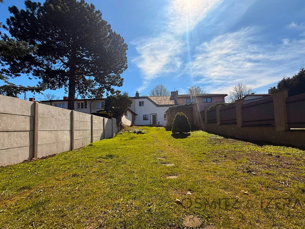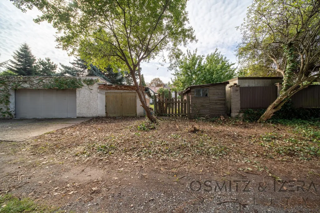 Před domem se nachází malá předzahrádka o ploše cca 36 m a za domem se rozprostírá velká zahrada s výměrou 327 m, která je dobře přístupná a nabízí příjemné místo pro relaxaci. Na zahradě je také garáž pro jeden automobil a menší zděná kůlna. Celková plocha pozemku činí 449 m, přičemž zastavěná plocha je zhruba 86 m. Podélný tvar zahrady a její orientace zaručuje téměř celodenní sluneční svit, což je ideální pro zahradničení, rodinné aktivity nebo třeba wellness zónu. Zahrada a garáž je přístupná i ze zadní části po asfaltové komunikaci což je veliký benefit.