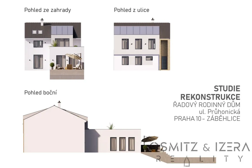 Okolní sousední domy již prošly úspěšnou rekonstrukcí, což ukazuje na potenciál v této lokalitě. Zobrazená studie rekonstrukce domu naznačuje jednu z možností přestavby tohoto domu.