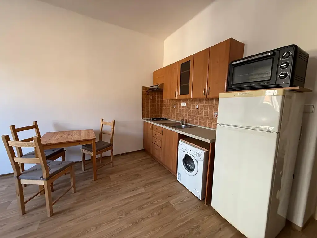 Jedná se o pronájem bytu ve 2. podlaží činžovního domu bez výtahu s oplocenou zahradou k užívání, ulice Ke Krči, bus směr Smíchovské nádraží nebo Kačerov. Poblíž cyklostezka, Žluté lázně. Byt je vybaven kuchyňskou linkou s plynovou varnou deskou, lednicí a základním nábytkem, možno dodat rozkládací gauč. K bytu náleží sklep. K dispozici od 15.4..