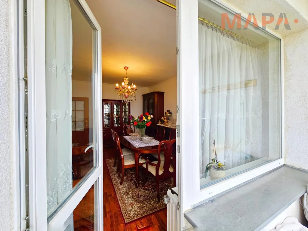 Velkou výhodou je zasklená lodžie, která rozšiřuje obytný prostor a poskytuje příjemné místo k relaxaci.