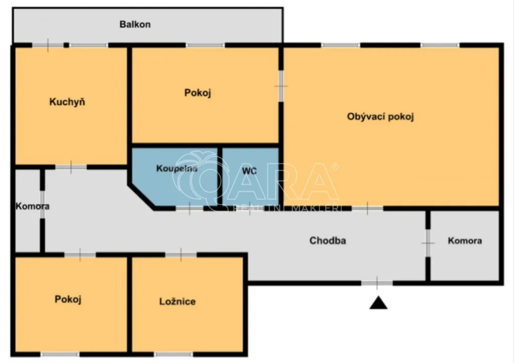 Dispozice bytu nabízí opravdu velkorysý prostor. Dominantou je prostorný obývací pokoj s dostatkem úložného místa, který poskytuje ideální zázemí pro společné chvíle s rodinou. K dispozici jsou tři samostatné pokoje, které lze využít jako ložnice, dětské pokoje či pracovnu. Byt má hned dvě samostatné komory, takže o úložný prostor tu rozhodně není nouze.