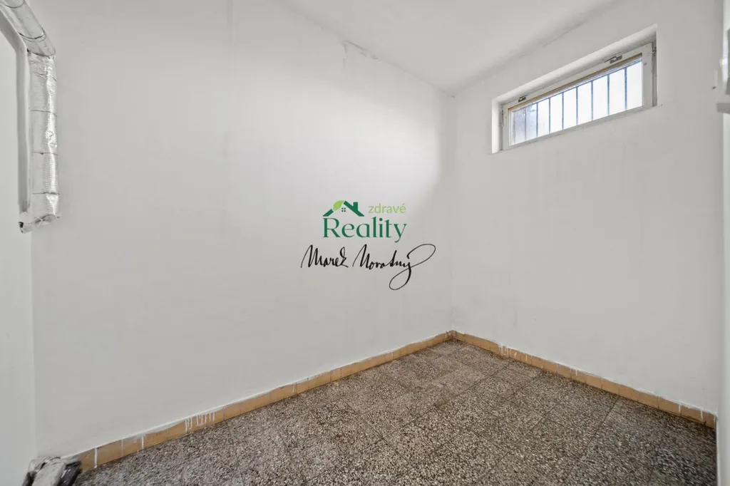 Přízemí: Aktuálně otevřený prostor bývalé prodejny s velkými výlohami + zázemí: sklady, malá kancelář, toaleta.