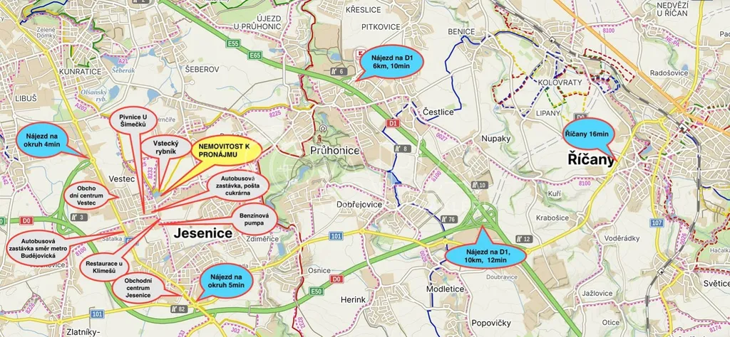 Výborné dopravní napojení na D1, Pražský okruh, MHD (BUS, metro Opatov) a cca 20 minut jízdy do centra Prahy.