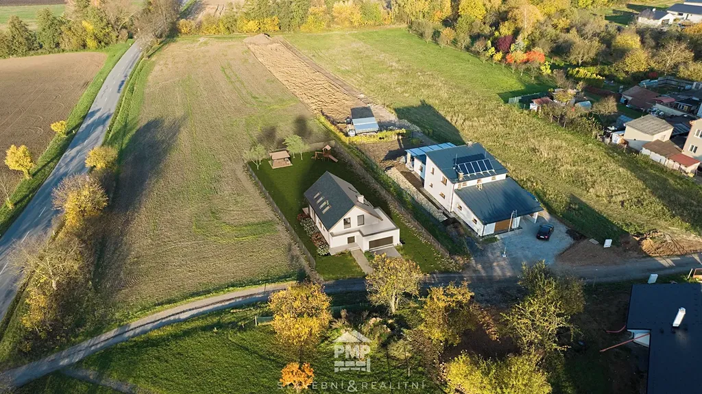 Pozemek je mírně svažitý a přístupný z obecní komunikace. Jeho rozloha činí 1.187 m² a dle platného územního plánu se celý nachází v zastavitelné ploše určené k bydlení. Koeficient zastavitelnosti je 50 % a na pozemku lze postavit jeden samostatný dům o maximálně dvou podlažích s podkrovím. Vzhledem k uliční šíři pozemku (27 metrů) se nabízí rovněž varianta výstavby dvojdomku. Výhodou je také orientace pozemku na jihozápad a severovýchod, což Vám během roku zajistí dostatek slunečního světla a tepelné energie.