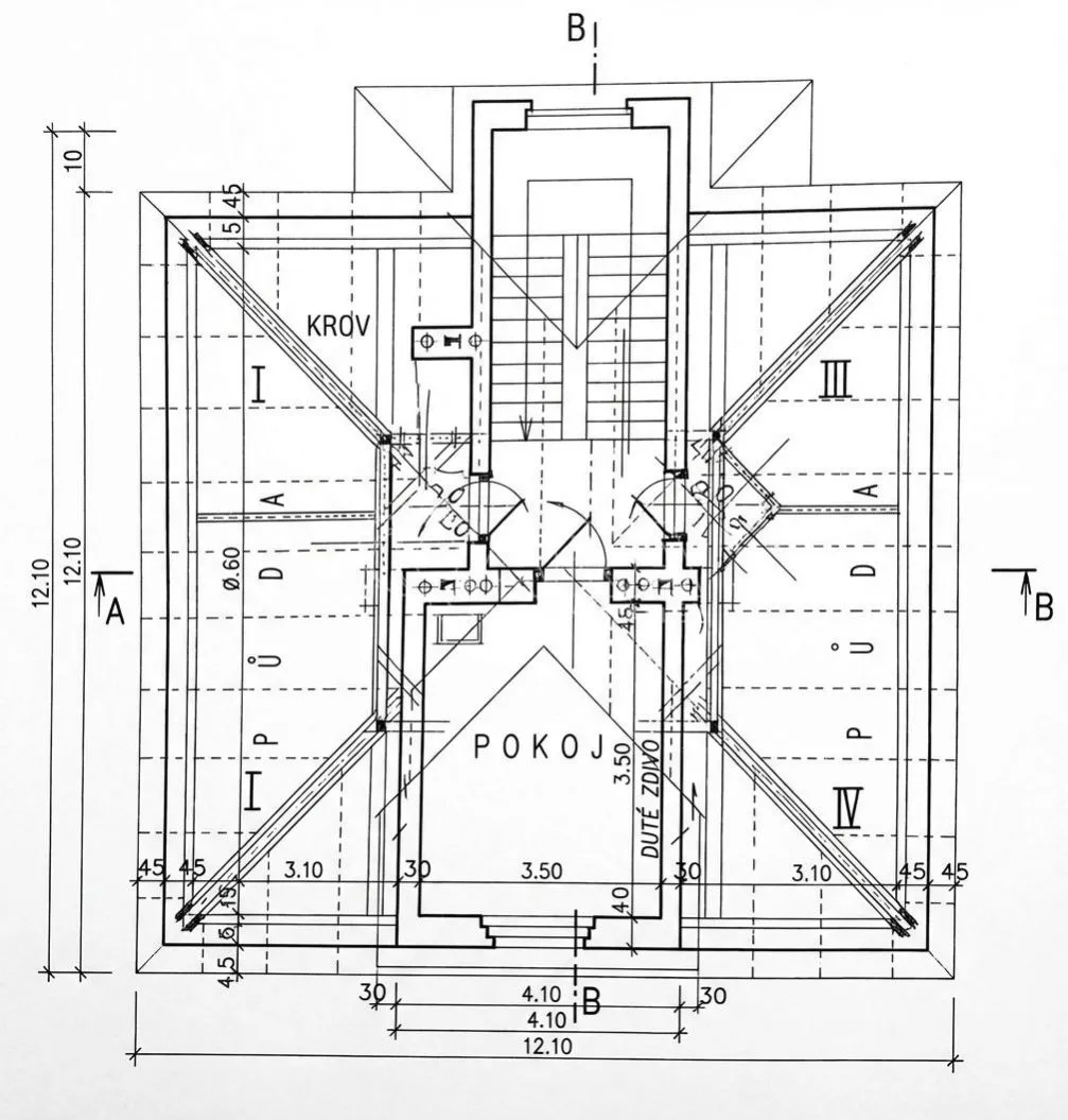 Podkroví 1 pokoj + 2 prostorné půdy (vhodné k vestavbě)