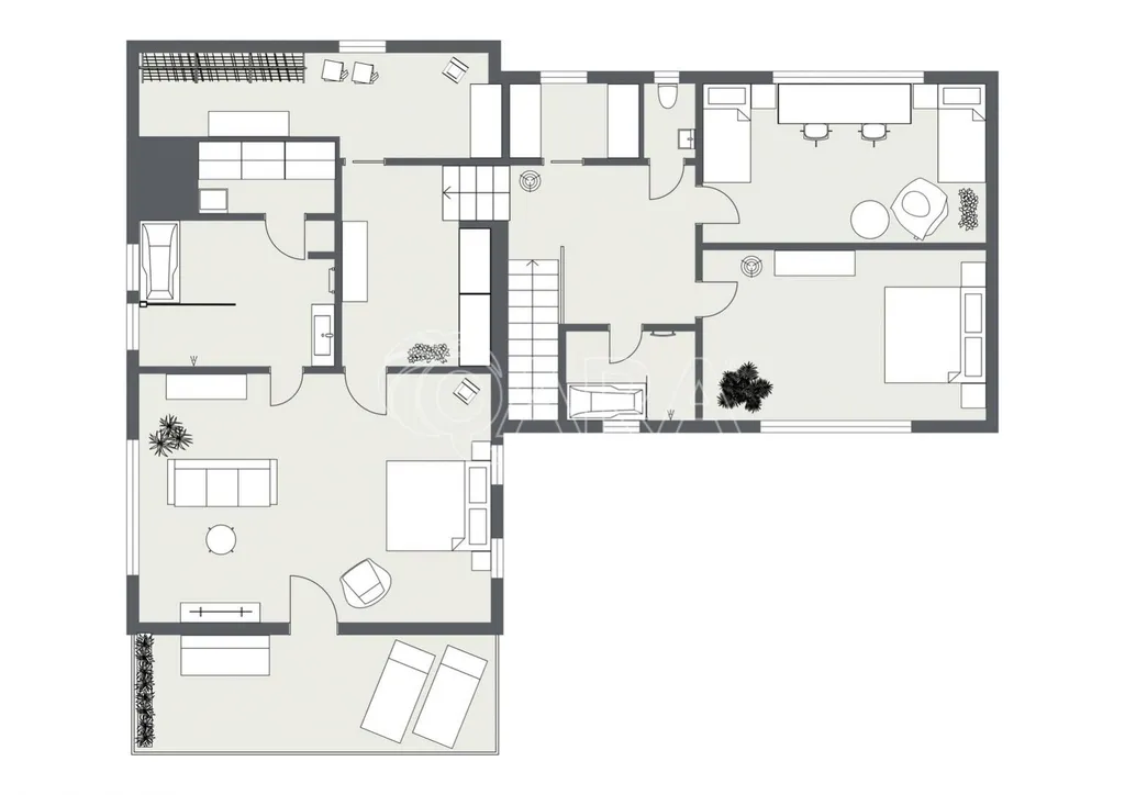 V suterénu domu se nachází prádelna, dvě technické místnosti a skladové prostory.