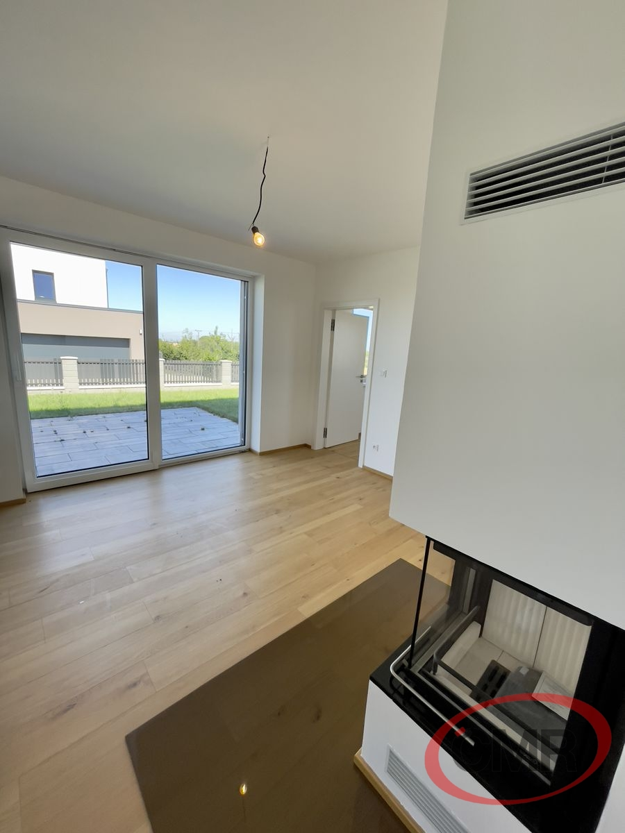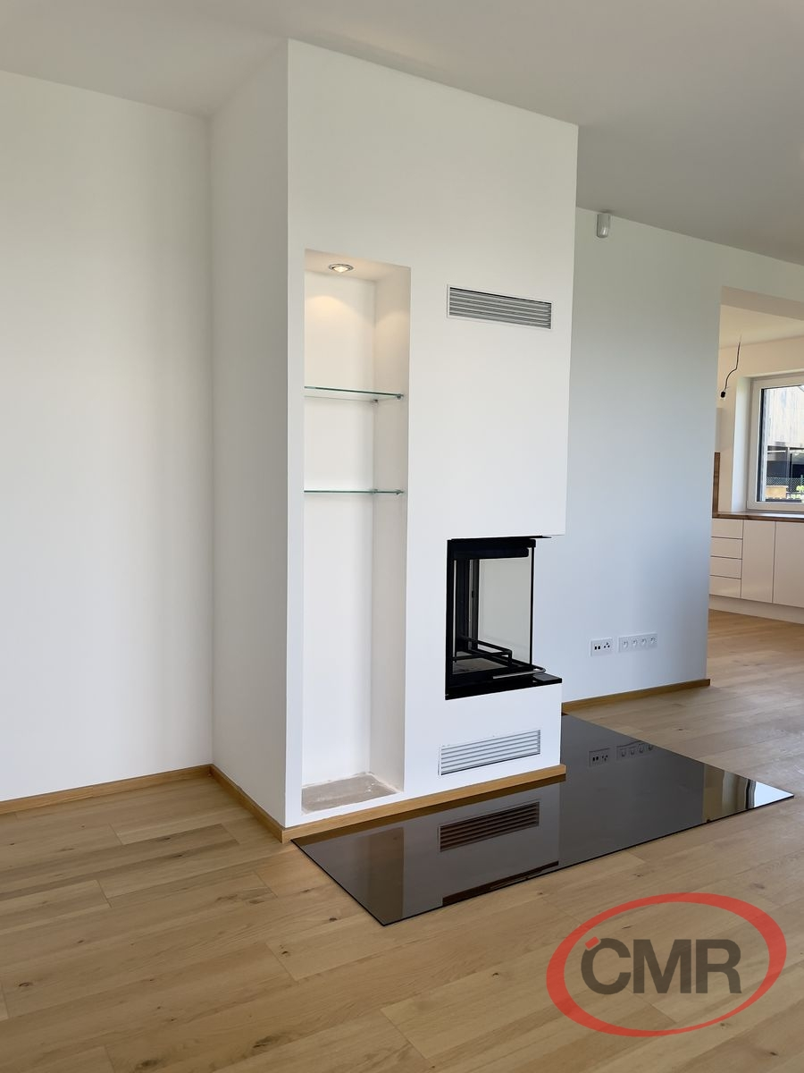V přízemí domu se nachází otevřený prostor obývacího pokoje s krbovou vložkou s plně vybaveným kuchyňským koutem, dále pracovna, toaleta pro hosty, prostorná vstupní hala, technická místnost a vstup do uzavřené garáže. Patro tvoří hlavní ložnice s šatnou, další dvě ložnice a samostatná, plně vybavená koupelna. Parkety, dlažba, alarm s možností napojení na PCO. K dispozici je garáž a možnost parkování před garáží. Mezi standardy patří tepelné čerpadlo, nádrž na dešťovou vodu a předokenní rolety.