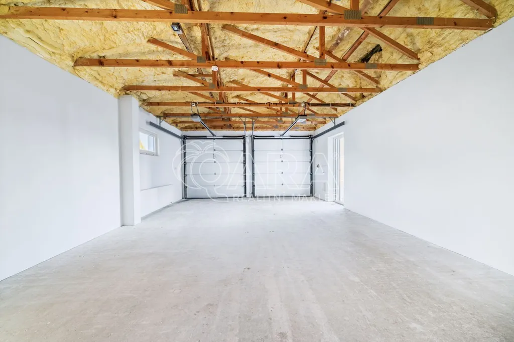 Na pozemku 816 m2 najdete zateplenou budovu ve tvaru písmene U o zastavěné ploše 228 m2. Ta má užitnou plochu 187 m2 a vešla se do ní spousta místností velká recepce se showroomem, zasedací místnost, 4 kanceláře, WC, skládek, kuchyňka, koupelna, místnost s technologiemi a sklad (téměř 60 m2) se zatepleným a vysokým stropem a 2 elektrickými vraty. Větší místnosti mají klimatizaci. Součástí prodeje je i nábytek v recepci a kuchyňce. Objekt je napojený na elektřinu, vodovodní řad a kanalizaci. Za budovou můžete grilovat a relaxovat díky zastřešenému posezení.