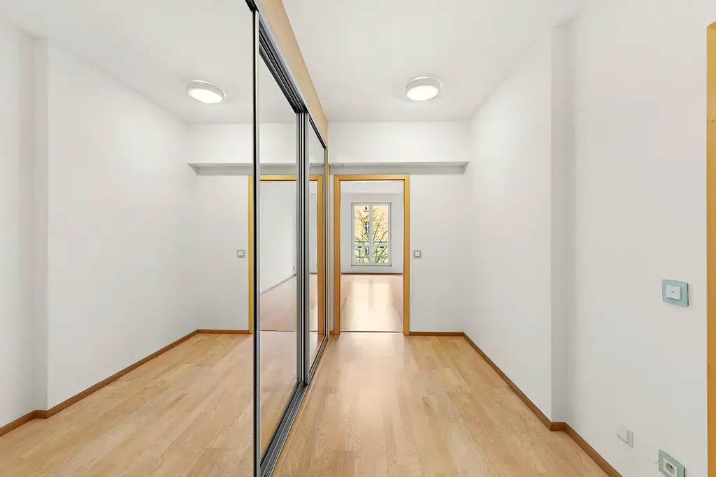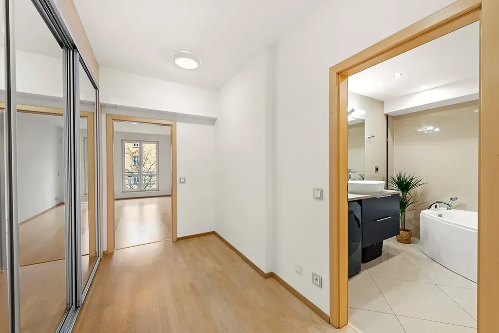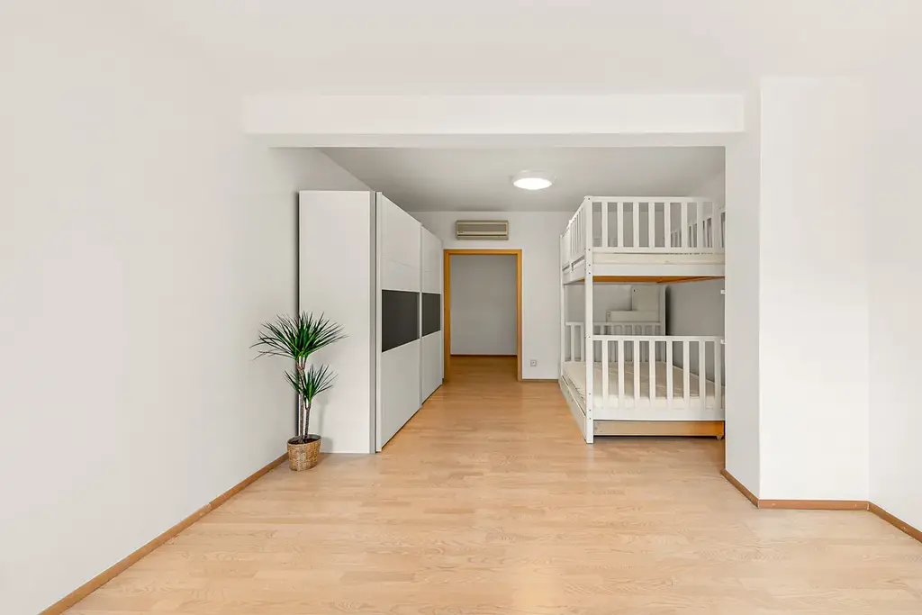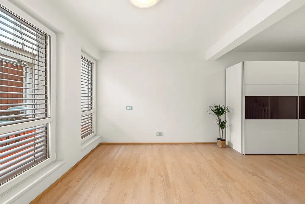 Dominantou bytu je prostorný a světlý obývací pokoj 67,58 m2 s kuchyňským koutem, který je ideálním místem pro každodenní život i reprezentaci. Byt je promyšlený do posledního detailu a nabízí velkorysé množství úložných prostor.
