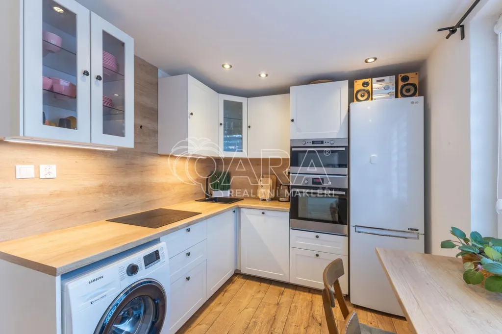 Kuchyň je vybavena moderní kuchyňskou linkou včetně myčky nádobí, indukční varné desky, vestavěné trouby i mikrovlnné trouby.