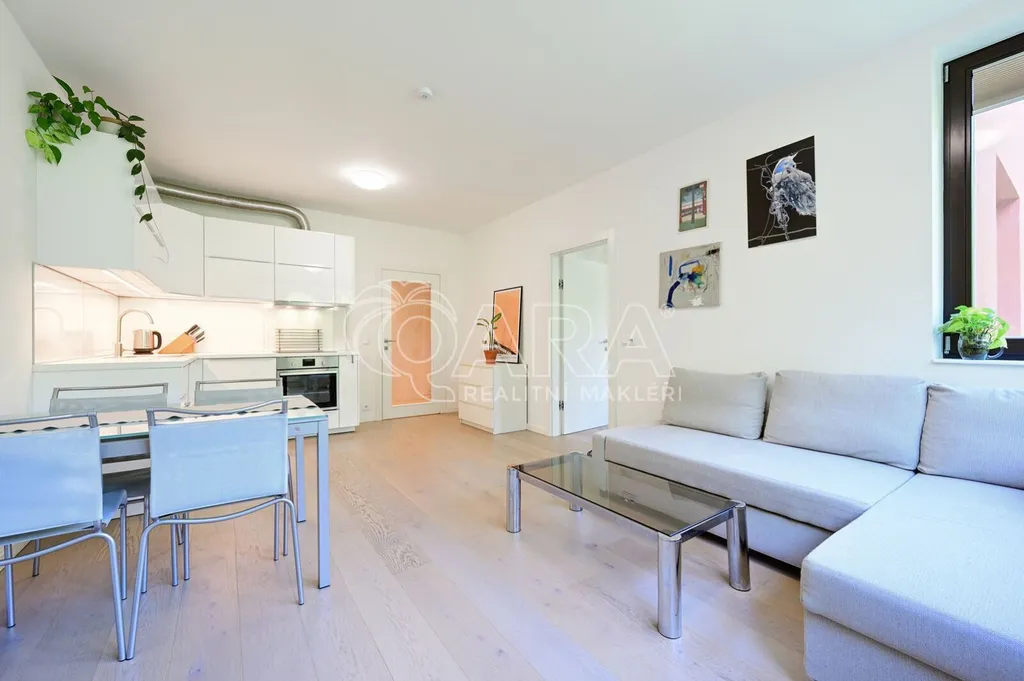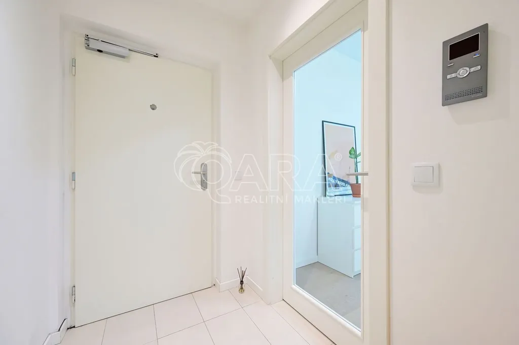 Dovolte mi představit Vám moderní, plně zařízený byt o dispozici 2+kk a rozloze 47,1 m, k němuž náleží parkovací stání v zakladači přímo v bytovém domě.