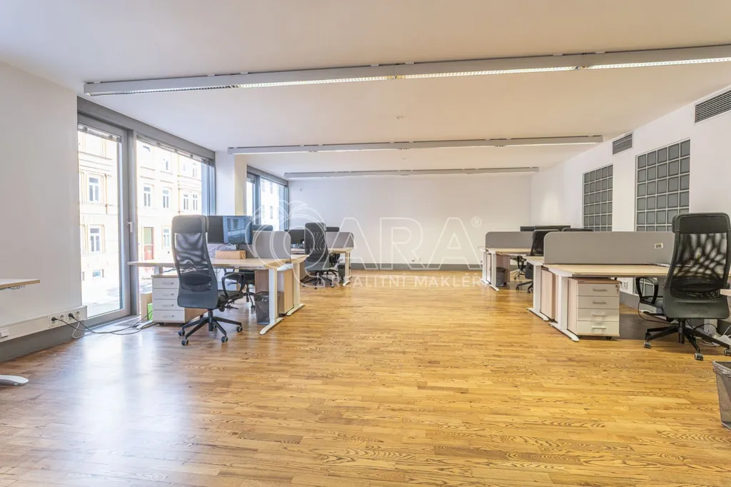 Prostor o celkové rozloze kanceláří 335 m je klimatizovaný. Dispozice nabízí dvě větší otevřené místnosti, dvě místnosti oddělené skleněnou stěnou, přičemž jedna z nich má vstup na terasu o velikosti 17 m, samostatnou uzavřenou místnost, zasedací místnost a prostor pro recepci či posezení návštěv. Zázemí zahrnuje kuchyňku, jídelní kout, 2x moderní sociální zařízení se sprchou, serverovnu a úklidovou místnost.