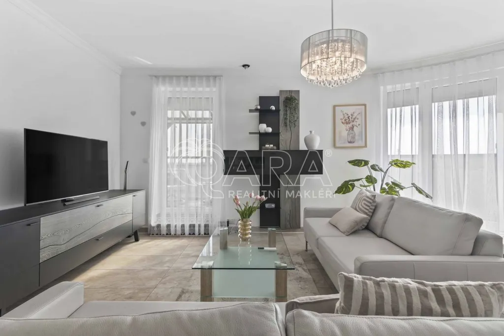 Byt 70 m2 + terasa 49 m2 ( včetně zimní zahrady) + velké parkovací stání + sklep. Na tenhle byt se ani nekoukejte, pokud hledáte klasiku. Tady se totiž neprodává normální byt. Tady kupujete venkovní obývák.