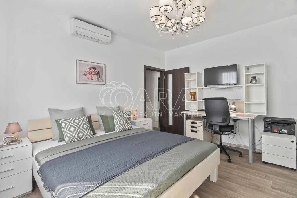 Velká výhoda? Nemusíte řešit vůbec nic. Vše, co vidíte na fotografiích, v bytě zůstává. Včetně venkovního nábytku, pračky, sušičky, klimatizace kávovaru i grilu. Stačí si vzít osobní věci a bydlet. Byt se nachází v 6. nadzemním podlaží ze 7, s výhledem do otevřeného prostoru a dostatkem soukromí.