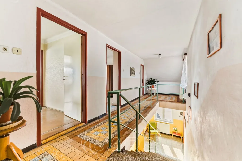 Po vstupu vás přivítá prostorná chodba se schodištěm, která přirozeně propojuje celý dům, a je zde také možnost projít do zahrady. V přízemí se nachází technické a sociální zázemí, dva pokoje a kuchyň. Ve druhém nadzemním podlaží se nachází tři plnohodnotné pokoje, půdní prostor a pokoj o velikosti 6 m, který může sloužit například jako pracovna.