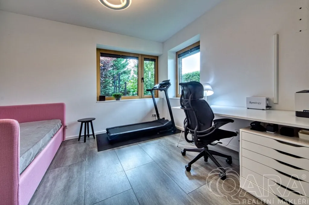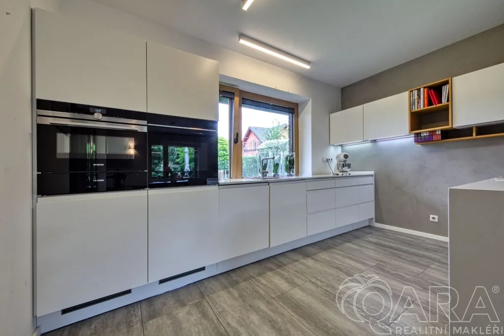 Dispozice domu 6+kk poskytuje dostatek prostoru i pro větší rodinu a zároveň nabízí praktické řešení úložných prostor. Dům byl postaven v roce 2016 s důrazem na kvalitu a využití nadstandardních materiálů. Prodává se částečně zařízený.