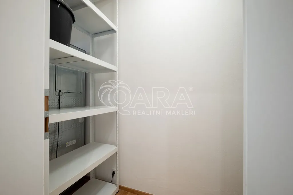 zděný sklep (6 m) s regálovým systémem a velkou šatní skříní