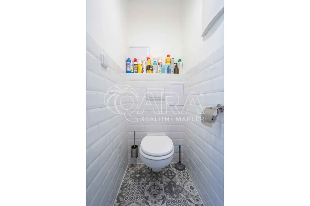 V koupelně pračka a sušička, kuchyňská linka včetně spotřebičů: vestavná lednice s mrazákem, mikrovlnná trouba, el. trouba, plynový sporák a digestoř.
