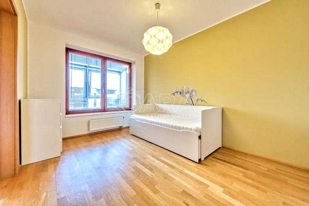 Dále je k dispozici samostatná ložnice, koupelna s vanou a oddělené WC. V bytě je také dostatek úložného prostoru.
