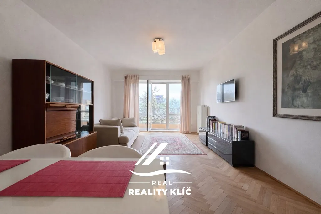 Dominantou bytu je prostorný obývací pokoj s balkonem orientovaným do klidného vnitrobloku. Obývací pokoj je zařízen vestavěnou skříní, jídelním stolem, televizí a pohodlnou pohovkou. Koupelna disponuje sprchovým koutem, umyvadlovou skříňkou se zrcadlem a toaletou.