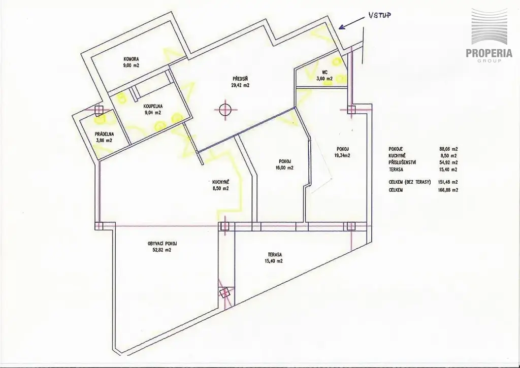 • Vstupní hala / předsíň (29,42 m²) – prostorná, s možností umístění vestavných skříní či pracovního koutku
