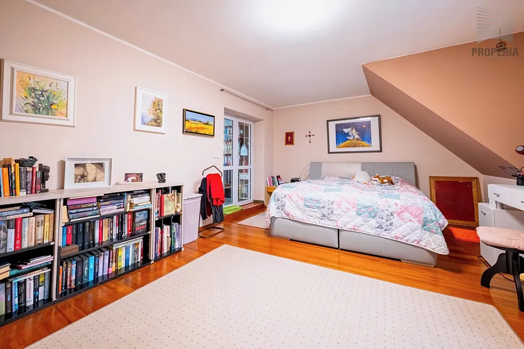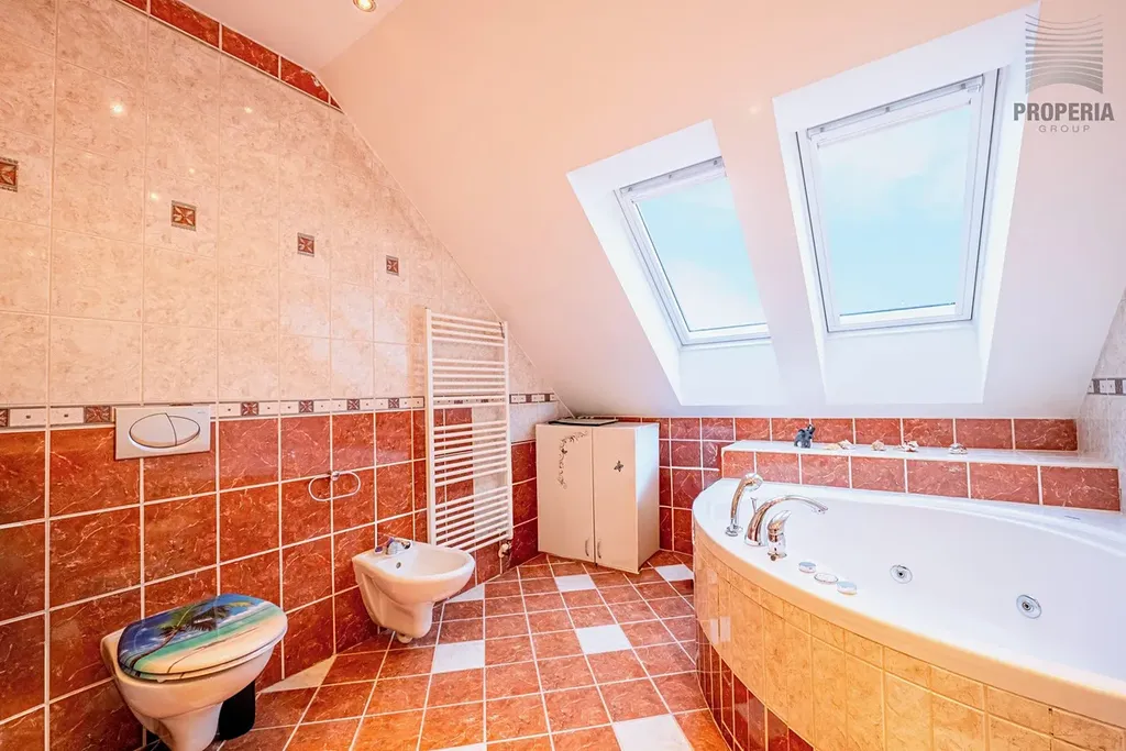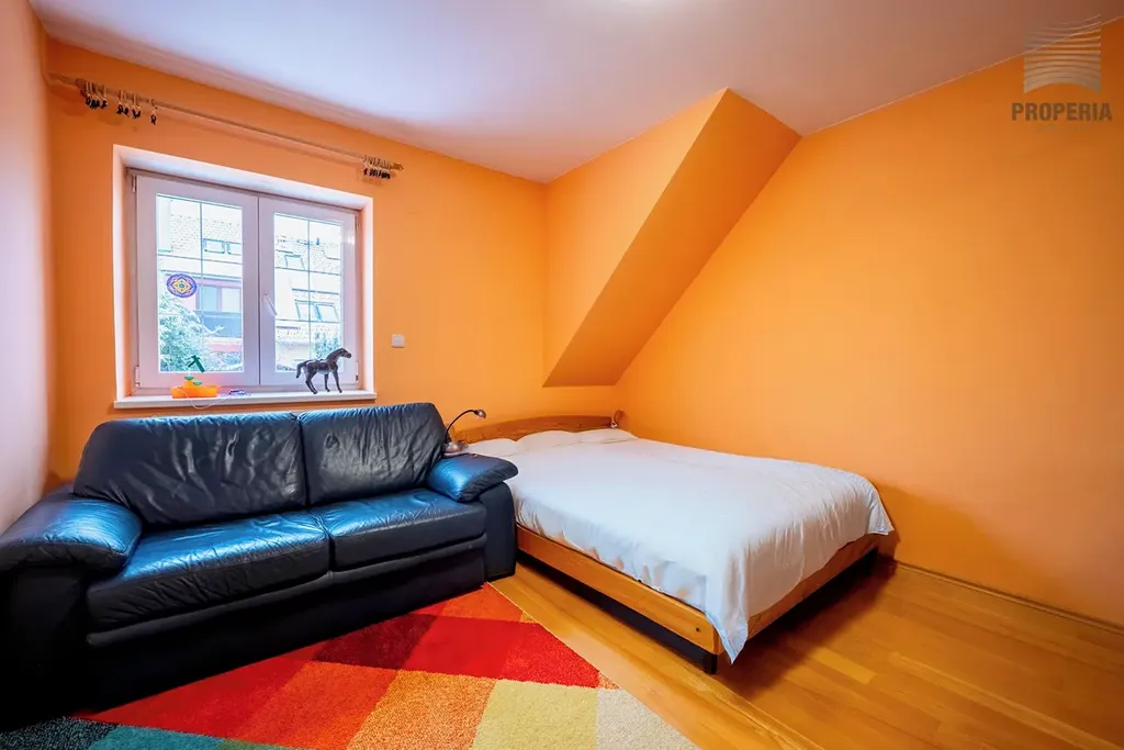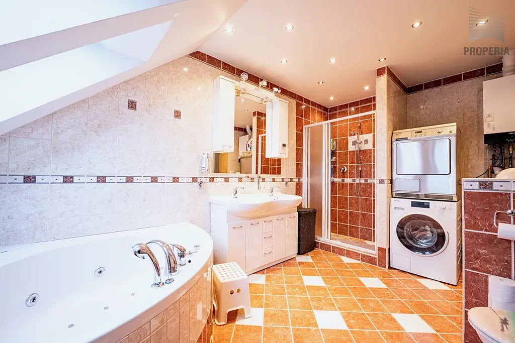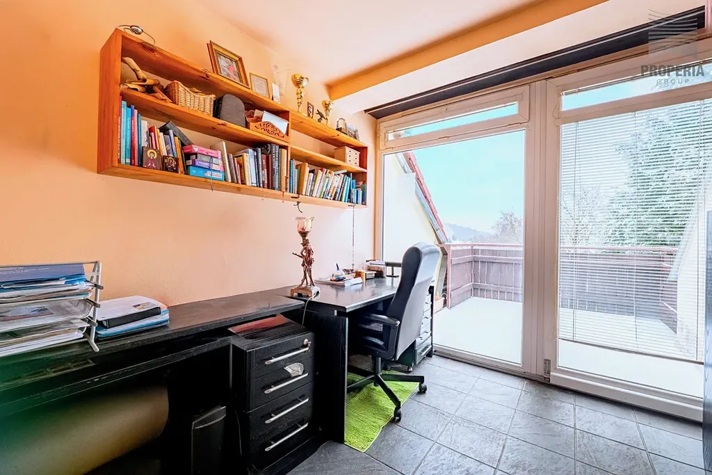 V horním podlaží na vás čeká klidová zóna domu. Hlavní ložnice s pracovnou, která je ideálním místem pro tiché ráno nebo chvíli s knihou, má vlastní vstup na terasu o velikosti 4,3 m². Dva další pokoje nabídnou dostatek prostoru pro děti, hosty či studovnu. Komfort doplňuje koupelna se sprchovým koutem i vanou, která splní požadavky celé rodiny.