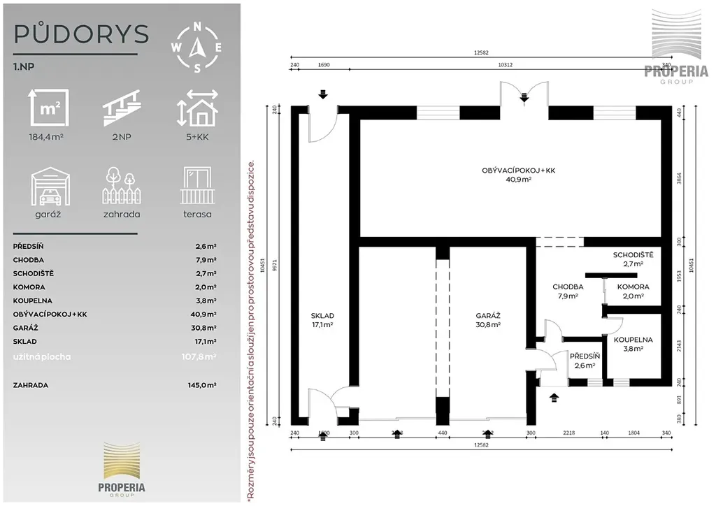 Rodinný dům o čtyřech pokojích nabízí promyšlené uspořádání na dvou podlažích – přízemí a obytném podkroví. Nepodsklepená cihlová stavba působí kompaktně a zároveň poskytuje dostatek místa (užitná plocha 184,4 m²) pro každodenní život i zázemí domácnosti. Samozřejmostí je garáž pro dva automobily, doplněná o prostorný sklad, kam se vejde vše od sportovního vybavení až po sezónní věci.