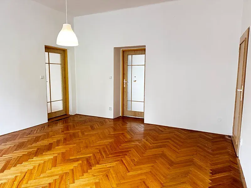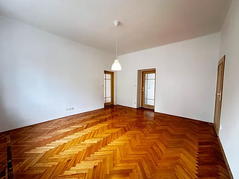 Byt je prostorný, dobře dispozičně řešený, prosluněný a připravený k okamžitému užívání. V kuchyni je osazená kuchyňská linka včetně spotřebičů (elektrická varná deska, digestoř, elektrická trouba, myčka a samostatně stojící lednice s mrazákem). Koupelna je vybavená vanou. Součásti bytu je rovněž menší pokoj s oknem vhodný jako pracovna nebo šatna.