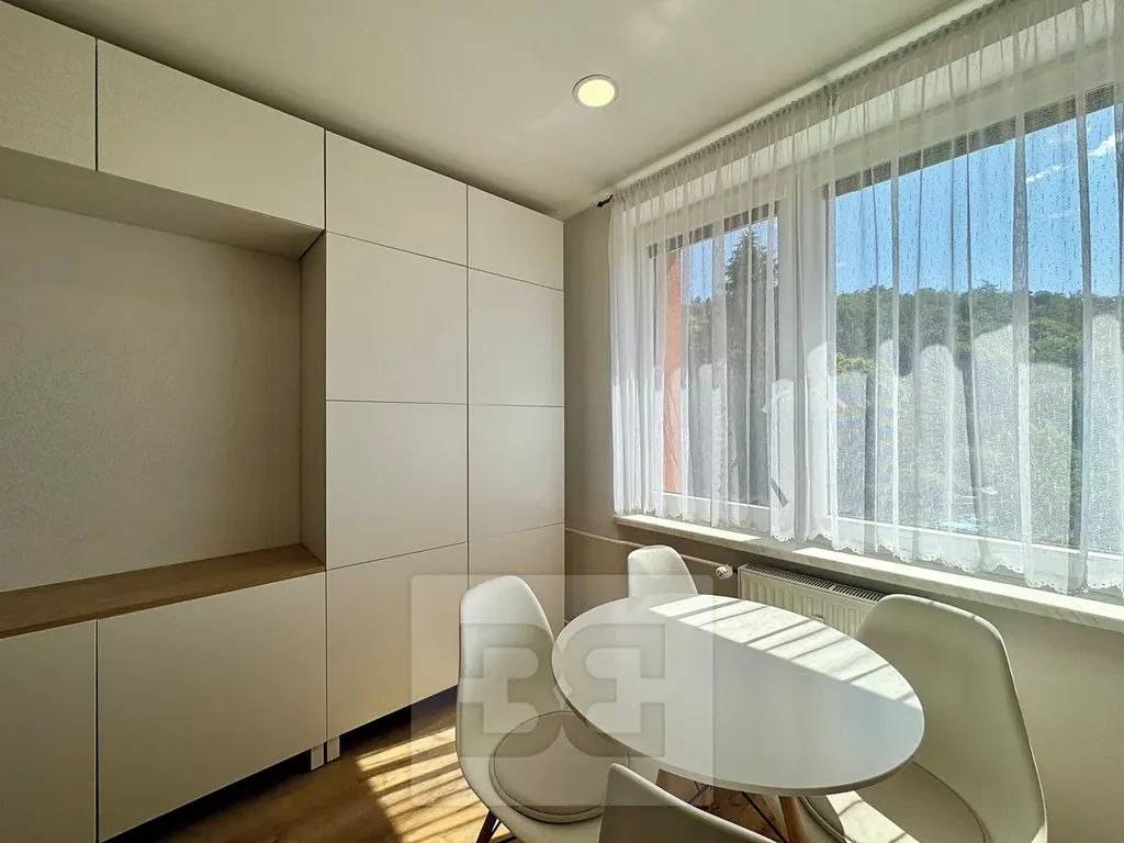 Přicházíme s nabídkou pronájmu krásného bytu 1+1 na ulici Popkova v Kuřimi! Tento útulný byt o celkové užitné ploše 32 m² se nachází ve velmi dobrém stavu domu ve 3. patře. V bytě najdete vše, co potřebujete ke komfortnímu bydlení. Prostorná předsíň s úložným prostorem na míru, po rekonstrukci byt také nabízí krásnou koupelnu, plně vybavenou kuchyni s všemi spotřebiči, stolem a židlemi. Vše na míru od truhláře. Prostorný pokoj je zařízen gaučem, TV stěnou a vlastními úložnými prostory na míru. K dispozici je také balkón s výhledem a příjemným posezením, sklep pro další úschovu a klimatizace. Tento krásný byt je ideálním místem pro pohodlný život. Nezaváhejte a kontaktujte nás pro další informace či prohlídku!
