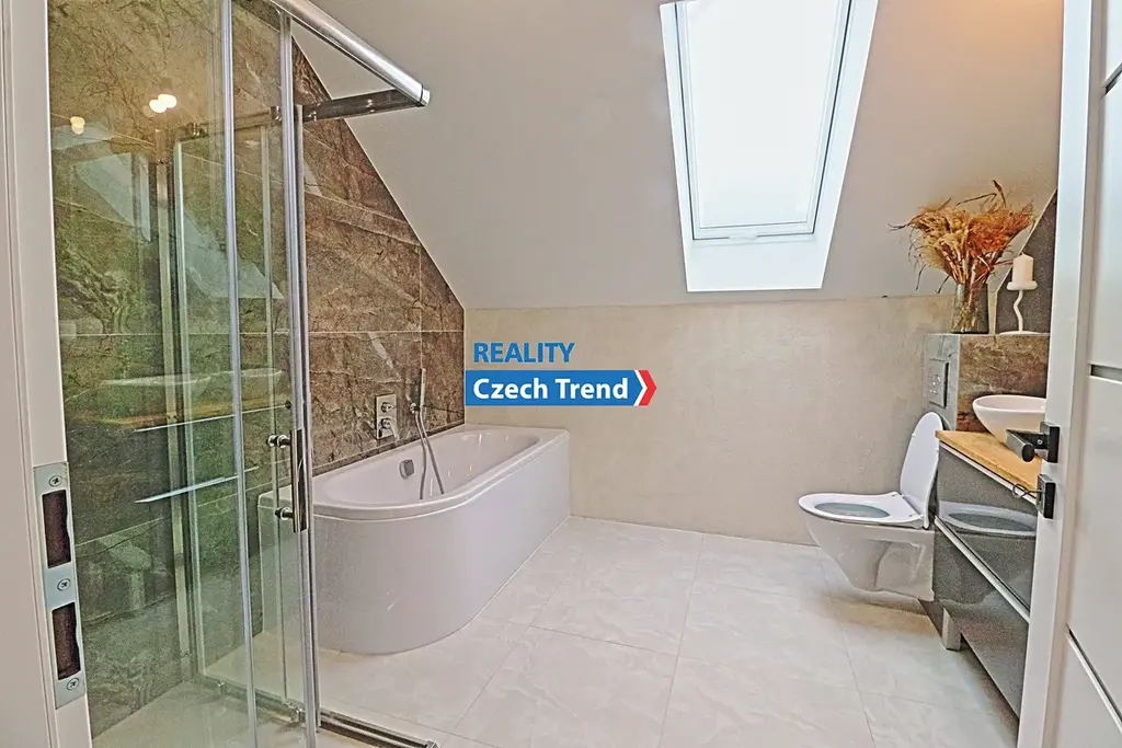 V bytě kuchyňská linka s vest. troubou, myčkou, indukční varné centrum a vest. mikrovlnná trouba. Koupelna se sprchovým koutem, vanou, 2 umyvadla a WC, V bytě videotelefon.