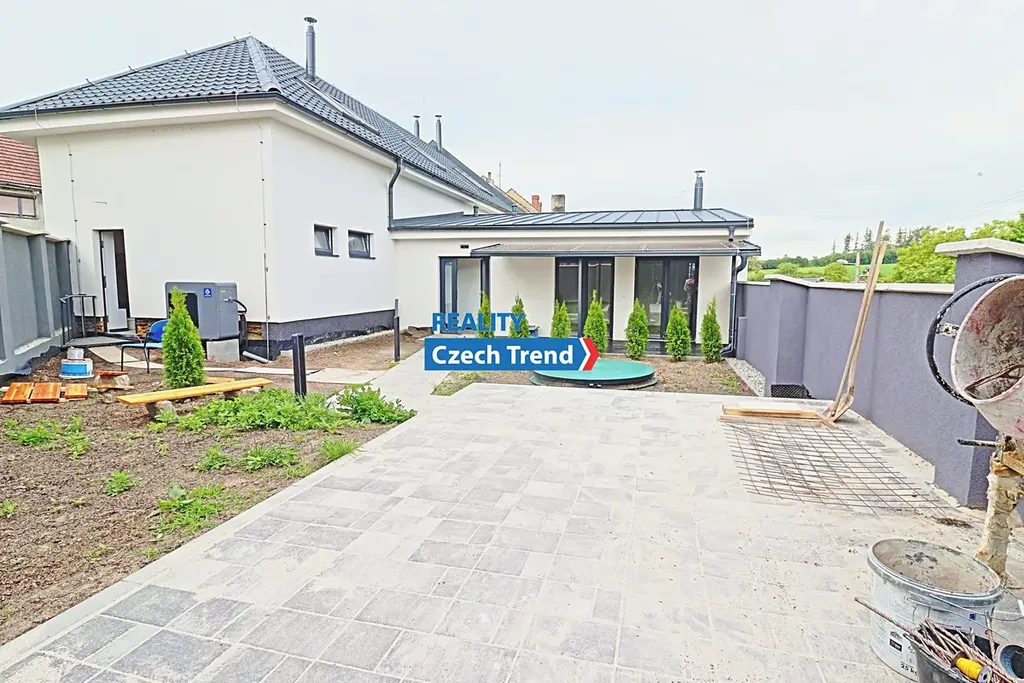 Prodej bytu 3+kk Tršice- Přestavlky, s plochou 95 m2. K bytu patří parkovací stání ve dvoře s bránou na dálkové ovládání a velký sklep s možností využít na vinotéku. Dům je postaven z cihel a kámen, zateplení 10 cm černý grafitový polystyrén. Střecha je plechová a zateplena 2x 15 cm vaty. Topení podlahové, tepelné čerpadlo s možností přepnutí na kotel na tuhá paliva + v místnosti krbová kamna. Voda studna, napojeno do domu + obecní vodovod. Ohřev vody boiler. Kanalizace ČOV. Podlahy Vinyl. Okna Aluplast (2 skla).