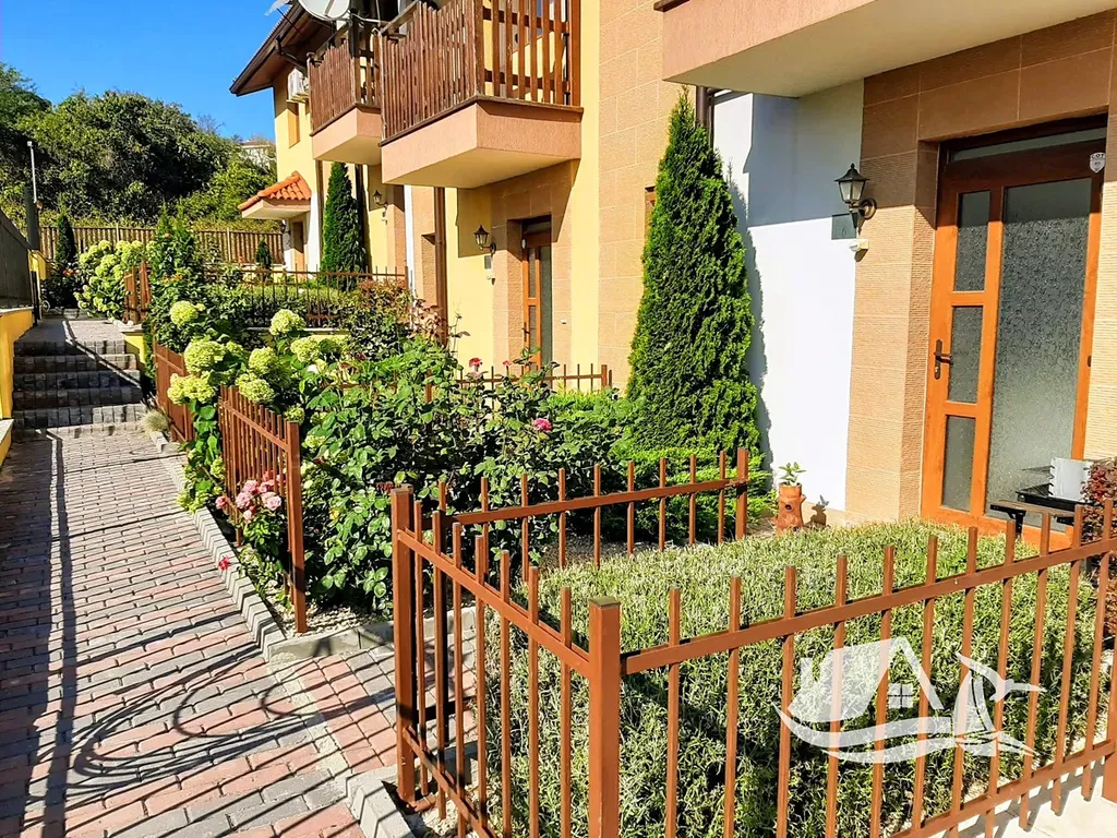 Představujeme Vám jedinečnou nabídku – dvoupodlažní městský dům typu townhouse v uzavřeném rezidenčním komplexu v klidném přímořském městečku Byala. Nemovitost spojuje komfort moderního bydlení s tradiční bulharskou architekturou – červené tašky na střeše, dřevěné balkony a prostorné panoramatické prosklení v obývacím pokoji. O útulnou atmosféru se stará i krb obložený přírodním kamenem.