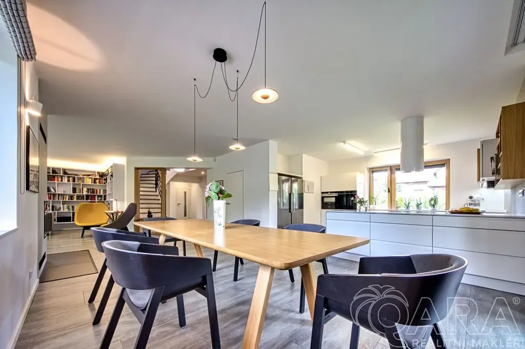 Dispozice domu 6+kk poskytuje dostatek prostoru i pro větší rodinu a zároveň nabízí praktické řešení úložných prostor. Dům byl postaven v roce 2016 s důrazem na kvalitu a využití nadstandardních materiálů. Prodává se částečně zařízený.