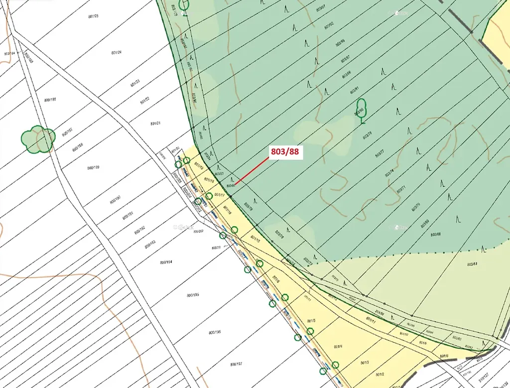 Lesní pozemky o výměře 107 m2, parcelní číslo 803/88, podíl 1/1, katastrální území Přísnotice, obec Přísnotice, obec s rozšířenou působností Židlochovice, okres Brno-venkov, Jihomoravský kraj.