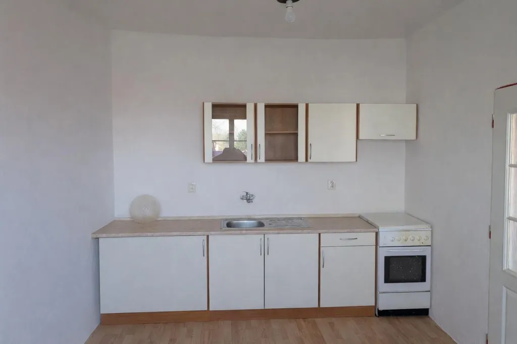 Byt disponuje samostatnou kuchyní, kde je k dispozici kuchyňská linka se dřezem a sporákem. Prostor kuchyně nabízí základní zázemí pro vaření. Obytná místnost je světlá díky oknům s dostatkem denního světla a působí vzdušně.