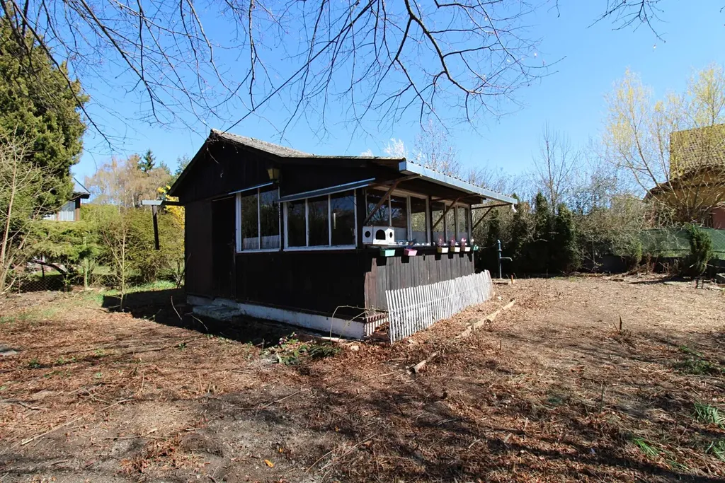 Pozemek je oplocený, se dvěma vzrostlými stromy, a stojí na něm dřevěná chatka se zastavěnou plochou 21 m2 určená k rekonstrukci nebo k demolici. Chatka i pozemek jsou kompletně vyklizené.