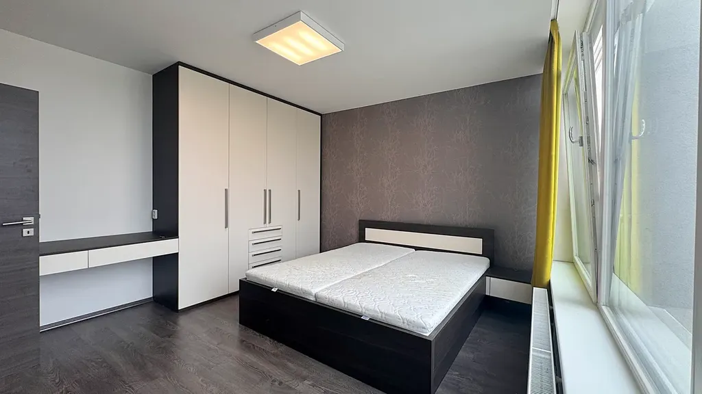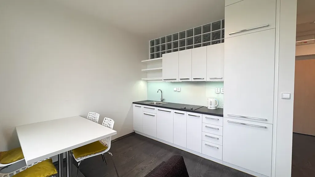 Byt je dispozičně řešen jako 2+kk a vyniká prostornou terasou s markýzou a výhledem do volného prostoru, ideální pro relax nebo ranní kávu. Součástí pronájmu je kryté parkovací stání v přízemí budovy.