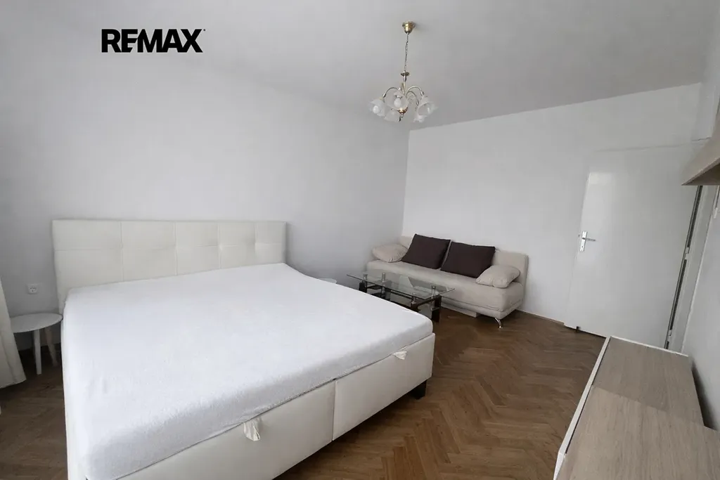 Byt je částečně zařízený – součástí je postel, gauč, posezení na balkoně a základní spotřebiče (pračka, lednička a myčka). Rekonstrukce proběhla v roce 2022.