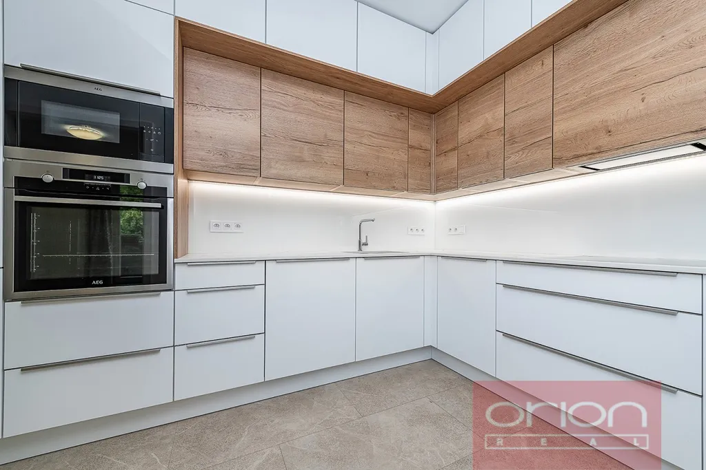 Dispozice bytu tvoří předsíň, kuchyň, obývací pokoj s balkonem, čtyři pokoje, dvě koupelny - jedna koupelna je se sprchovým koutem a toaletou, druhá koupelna je s vanou, dále dvě samostatné toalety, chodba a technická místnost. Byt byl zrekonstruován, součástí prodeje je moderní kuchyňská linka na míru se dvěma lednicemi a dalšími spotřebiči nejvyšší třídy zn. AEG, vestavěné skříně, úložné prostory vyrobené na míru, pračka a sušička, které jsou umístěné v technické místnosti, kde je také vestavěný nábytek včetně výlevky. Podlahy jsou vinylové. Vytápění a ohřev teplé vody zajišťuje společná kotelna v domě.
