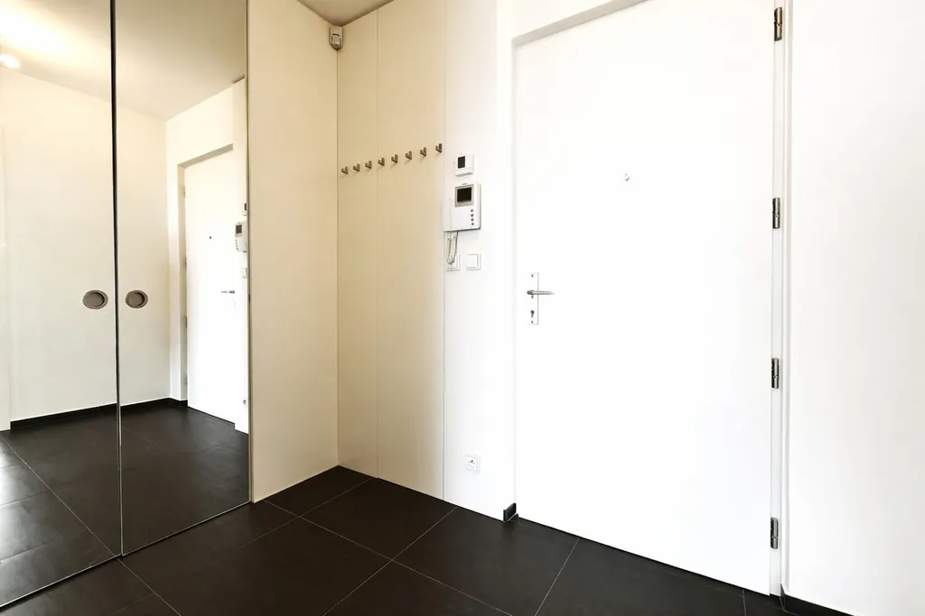 Nabízíme k pronájmu moderní byt se dvěma parkovacími stáními v rezidenci Villa City View na Praze 5 - Smíchov. Tento byt 3+kk (96,5 m² ) má terasu (6 m² ) s krásným výhledem na město, je umístěn v 1. patře a je s bezbariérovým přístupem jak ze vstupu do Rezidence, tak z garáže. Dispozičně byt nabízí vstupní chodbu s úložným prostorem, velký obývací pokoj spojený s jídelní částí a kuchyní a se vstupem na terasu, 2 ložnice, z toho hlavní ložnice má vlastní koupelnu se sprchou a toaletou, dále druhou koupelnu s vanou a toaletou. V ložnicích jsou vestavěné skříně, obývací pokoj je vybaven designovým policovým systémem. Moderní kuchyňská linka je vybavena spotřebiči, varnou deskou Küppersbusch se systémem Vok, lednicí s mrazákem, myčkou a troubou. Na podlahách jsou kvalitní parkety a dlažba. Byt je vybaven venkovními roletami ve všech pokojích, má bezpečnostní dveře, alarm a patří k němu jedno garážové stání v podzemní garáži, jedno venkovní parkovací stání a velký sklep. Dům je situován v klidné lokalitě Prahy 5, nabízí dostatek soukromí a příjemné bydlení. Výborné spojení autem a MHD k obchodnímu centru Anděl, kde je stanice metra a tramvají, do centra města, na letiště Václava Havla, do mezinárodních škol.