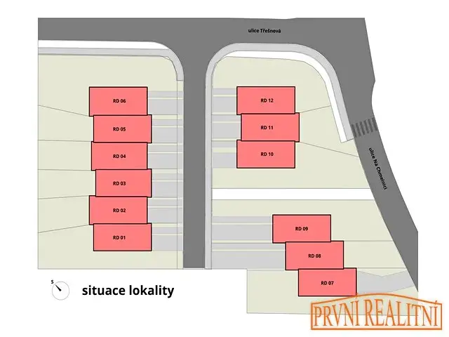 Výstavba a prodej nových řadových domů na ulici Třešňová