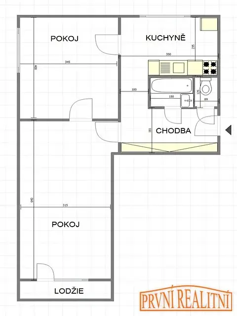 - v bytě je kuchyňská linka, koupelna s vanou, WC a nová lodžie