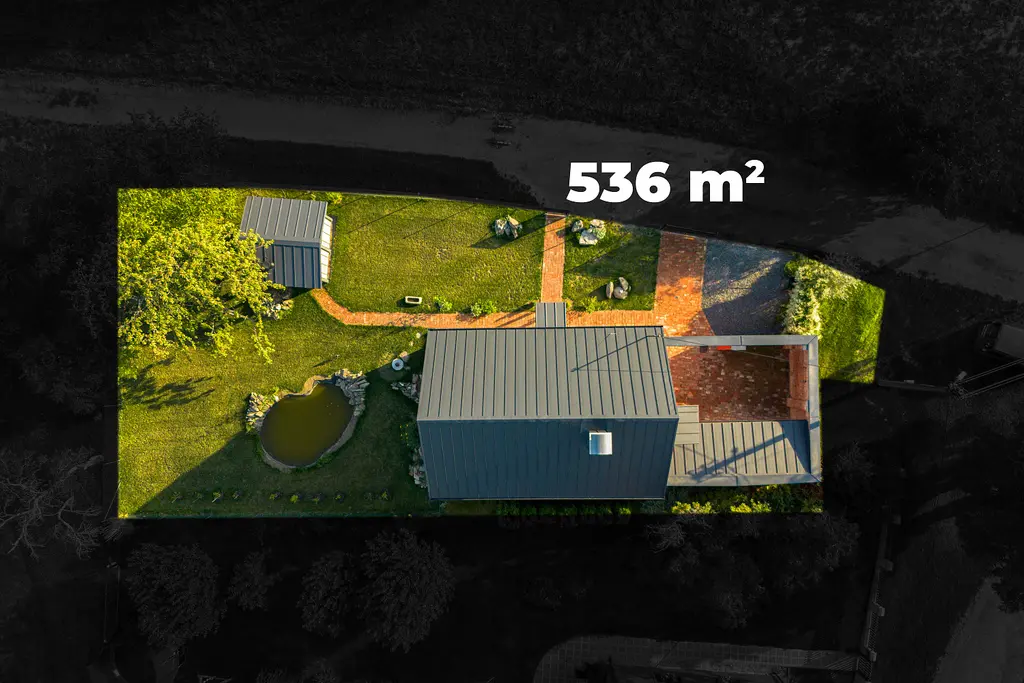 Dům obklopuje krásná zahrada s jezírkem a altánem k posezení a grilování. Celková výměra pozemku je 536 m². Při krásném východu slunce si vychutnáte nádherné výhledy do okolí, které jsou nezapomenutelné. Nemovitost je vhodná i ke klidné rekreaci.